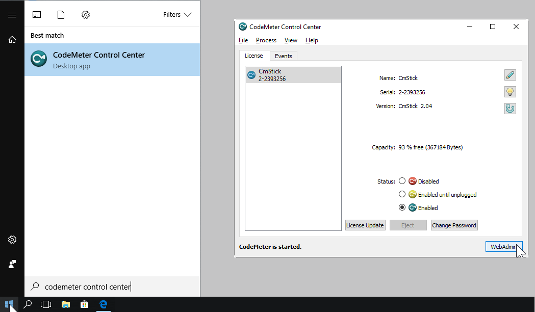 2. Make sure your CmStick is plugged-in ("CmStick" and a number is displayed) and click "WebAdmin"